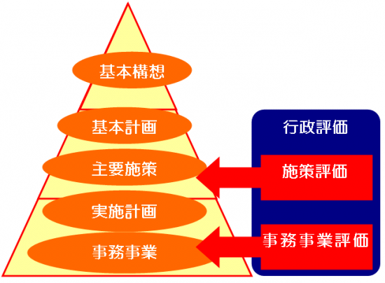 実施した事務事業の成果やコストなどについて現状分析を行うことによって、目的を達成するために解決すべき課題を発見し、事務事業の方向性を判断しつつ、具体的な業務改善につなげる。