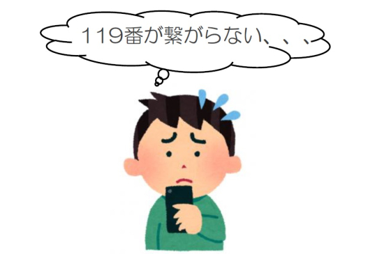 通信・通話障害などが発生し、携帯電話等から119番通報がつながりにくい場合は、公衆電話を利用する、近隣の方やお店に119番通報を依頼する、消防署所に直接駆け込むなどのご対応をお願いいたします。
