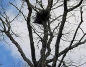 カラスは、昔は神社の森とか、郊外の森で繁殖していたのですが、これらの木が少なくなったためか、また、数が増えたためか、市街地のカラマツなどに巣を作り、子育て中には巣の下を通る人を襲ったりするようになりました。広陵中学校付近の林や、丸山公園、以前に町立病院のあった近くのシラカバには毎年巣を作っています。