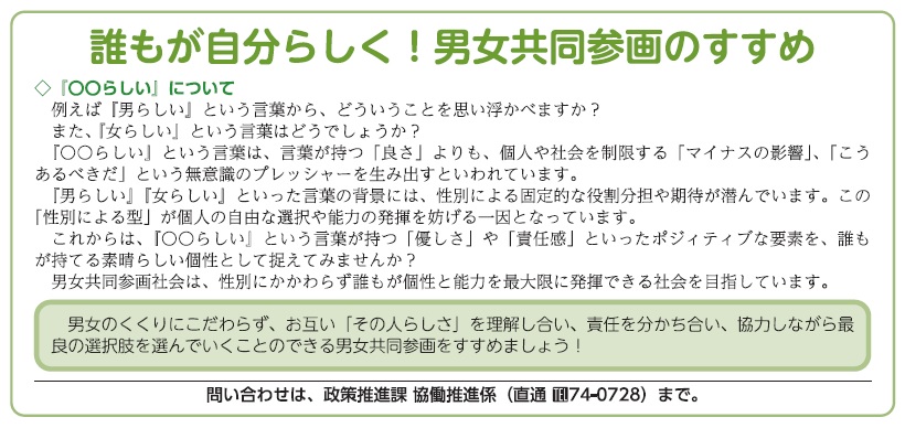 【広報連載】誰もが自分らしく!男女共同参画のすすめ