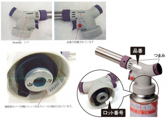 飲食店で、株式会社旭製作所が輸入し、岩谷産業株式会社が販売したガストーチにガスボンベを接続して使用中、周辺を焼損する火災が発生しました。当該事故の原因は、現在、調査中ですが、ボンベ接続部の取付けビスの締付け不足により接続部に隙間ができ、ガス漏れが発生し、火災に至ったものと考えられます。事故の再発防止を図るため、販売事業者である岩谷産業株式会社は、当該製品を含む対象製品について、無償製品交換を実施しています。対象製品をご使用の方はイワタニお料理バーナー相談室 フリーダイヤル 0120-60-1598 までご連絡いただきますようお願いいたします。