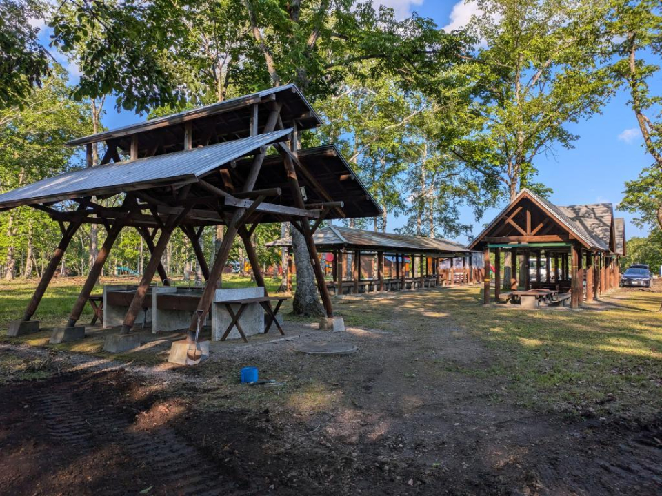 令和8年度は昨年度完成した管理棟及び炊事場付トイレ棟(広場側1棟)の外構工事を予定しております。また、今シーズンの営業終了後に旧管理棟などの解体工事を行う予定です。