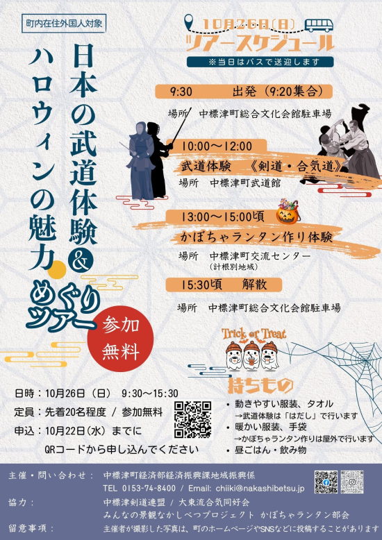 町内在住外国人向け「日本の武道体験&ハロウィンの魅力めぐりツアー」開催のお知らせ