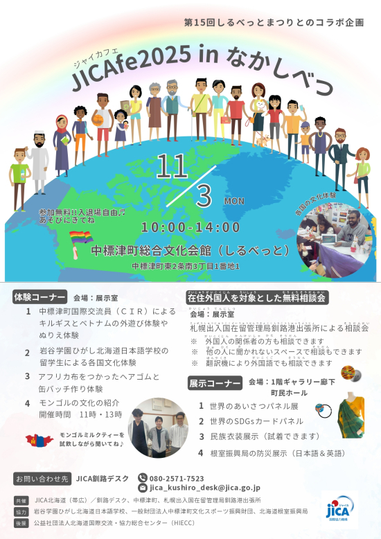 小さいお子様から参加できるイベントがたくさんの「JICAfe2025㏌なかしべつ」に、ご家族やお友達と是非お越しください!