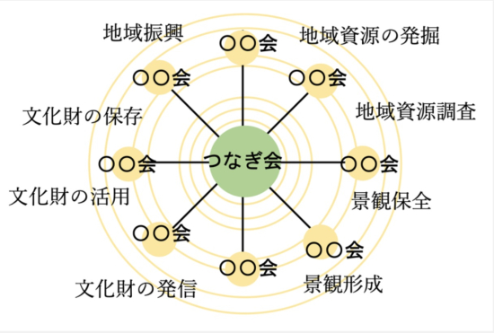 そうした中で、計画策定後も、文化財の掘り起こしや、その価値を広める活動を行いたいと調査部会の部員が発起人となり、郷土館友の会、みんなの景観中標津プロジェクトの調査部会の構成団体に加えて、新たにNPO法人伝成館まちづくり協議会、中標津町の文化財を考える会、なかしべつ町民活動ネットワークの3団体も参画し5つの町民活動団体で「中標津しるべつなぎ会」が設立されました。